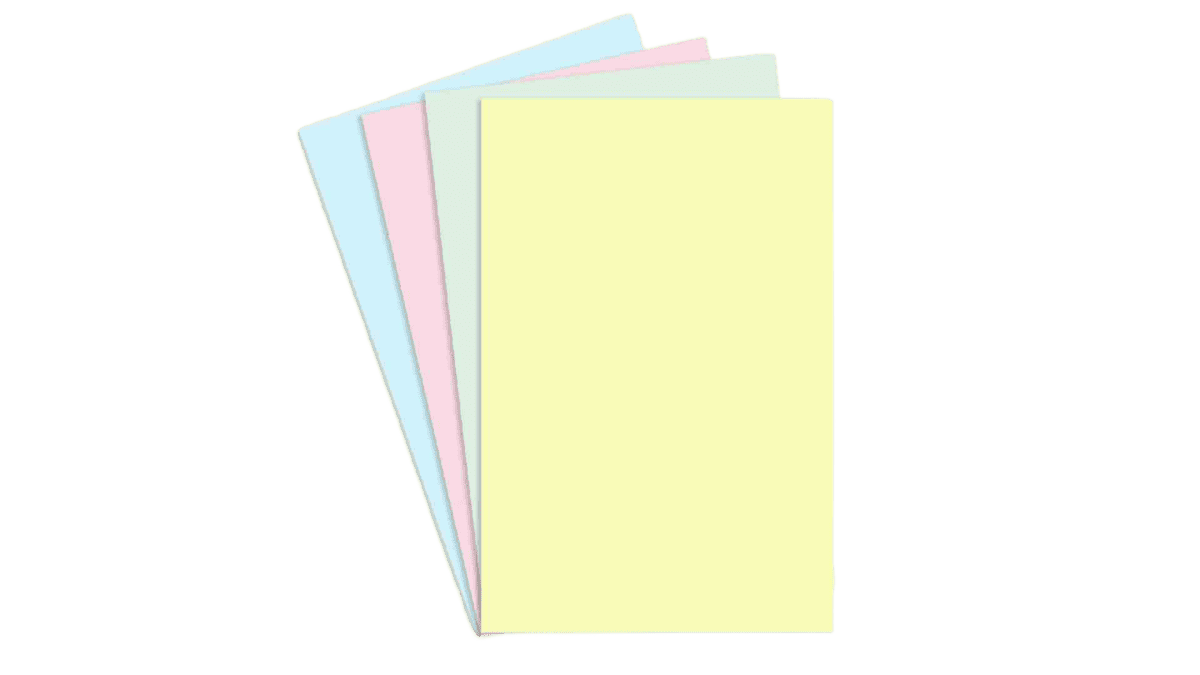 Las cartulinas están disponibles en diferentes colores pastel, los cuales son: blanco, rosado, verde, azul y amarillo.