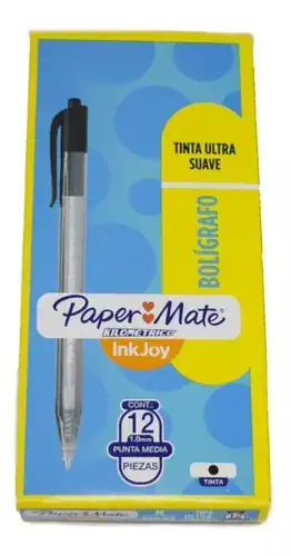 lapicero paper Mate Inkjoy 100 Rt lapicero retráctil De Punta De Bola, punta mediana De 1 Mm, Cuerpo Negro, tinta negra de escritura cómoda y fluida, facilita que se produzcan menos borrones, cuerpo transparente, punta media, trazo de 1 mm.