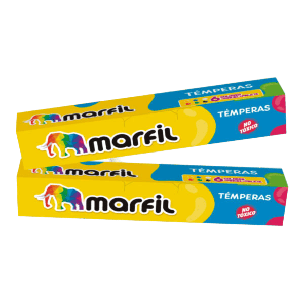 La caja de témpera trae 6 pinturas las cuales son blanco, verde, negro, amarillo, rojo y azul e incluye pincel y paleta de pintura sencillos, es clásica por sus colores e ideal para los niños y adolecentes para que puedan aprender los colores primarios además aprendan cómo mezclar los colores para crear toda una gama de colores.